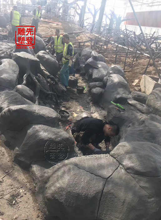 8、“山無草不活”,制作人工塑石假山時要按照整體造型要求在適當地方留置種植穴,種植花草和樹木,使整座假山顯得生機勃勃,達到以假亂真的效果。