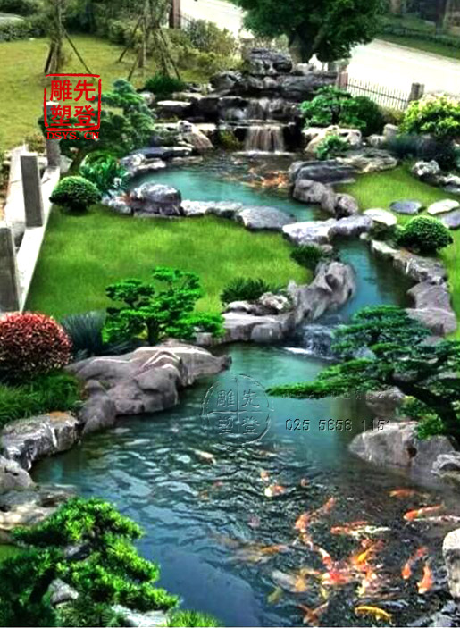 10、假山設計要注意山水結合,相映成趣。人工假山建成后,在假山前面或左右,可挖土筑池。以精巧細膩的藝術手法理好水景,把假山上的流水引入池中,形成假山瀑布跌水,使水得山而活,山得水而媚。
